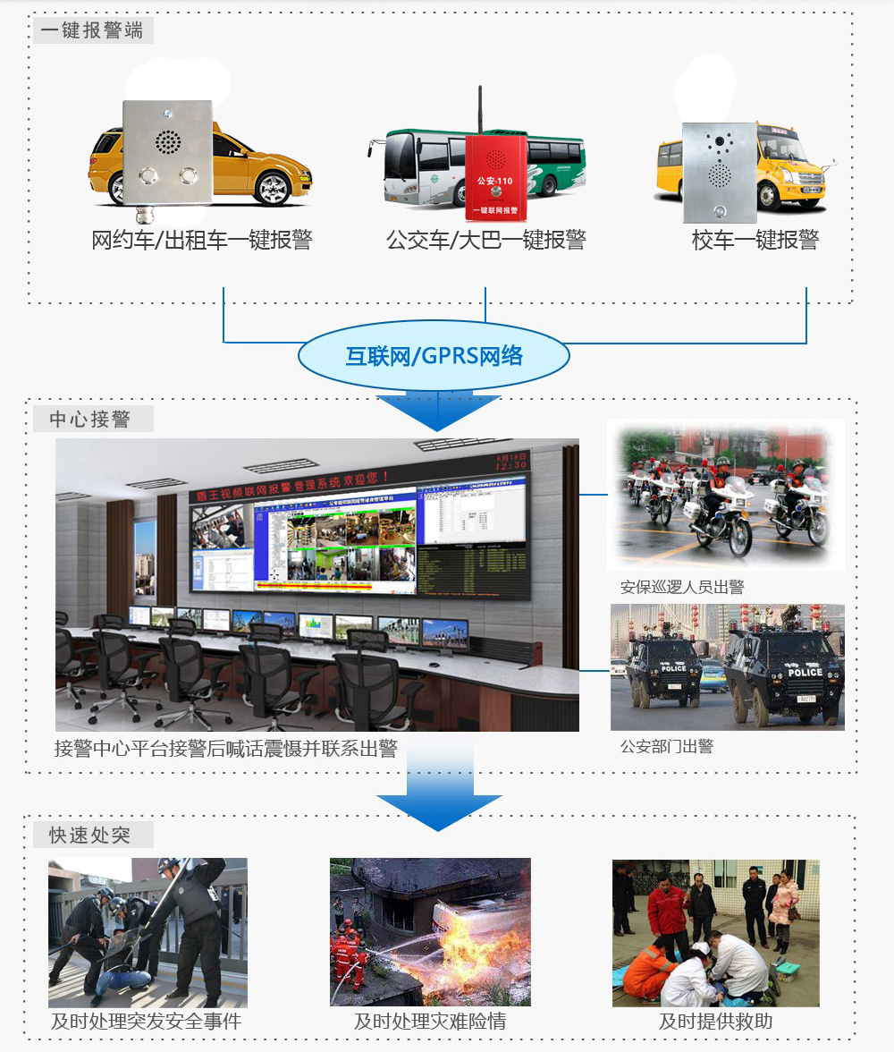 一、一鍵報警聯動,盾網車載一鍵報警系統的一鍵報警主機與聯網報警平臺聯動,只需按下一鍵報警按鈕聯網報警接警平臺就會立即彈出報警位置和車輛相關信息為快速出警提供有力保障;