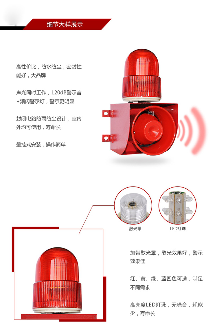 采用集成電路設計,具有抗干擾能力強、工作穩定等特點。機殼選用冷軋鋼板材料,采用先進的噴塑工藝制作而成,科學的結構設計,具有美觀大方、重量輕、強度高、安裝方便等優點。本產品可根據用戶使用場合及要求,定制電壓、音調、語音報警等方式
