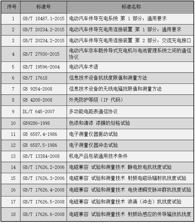 充電樁設(shè)計(jì)遵循以下國(guó)家標(biāo)準(zhǔn)
