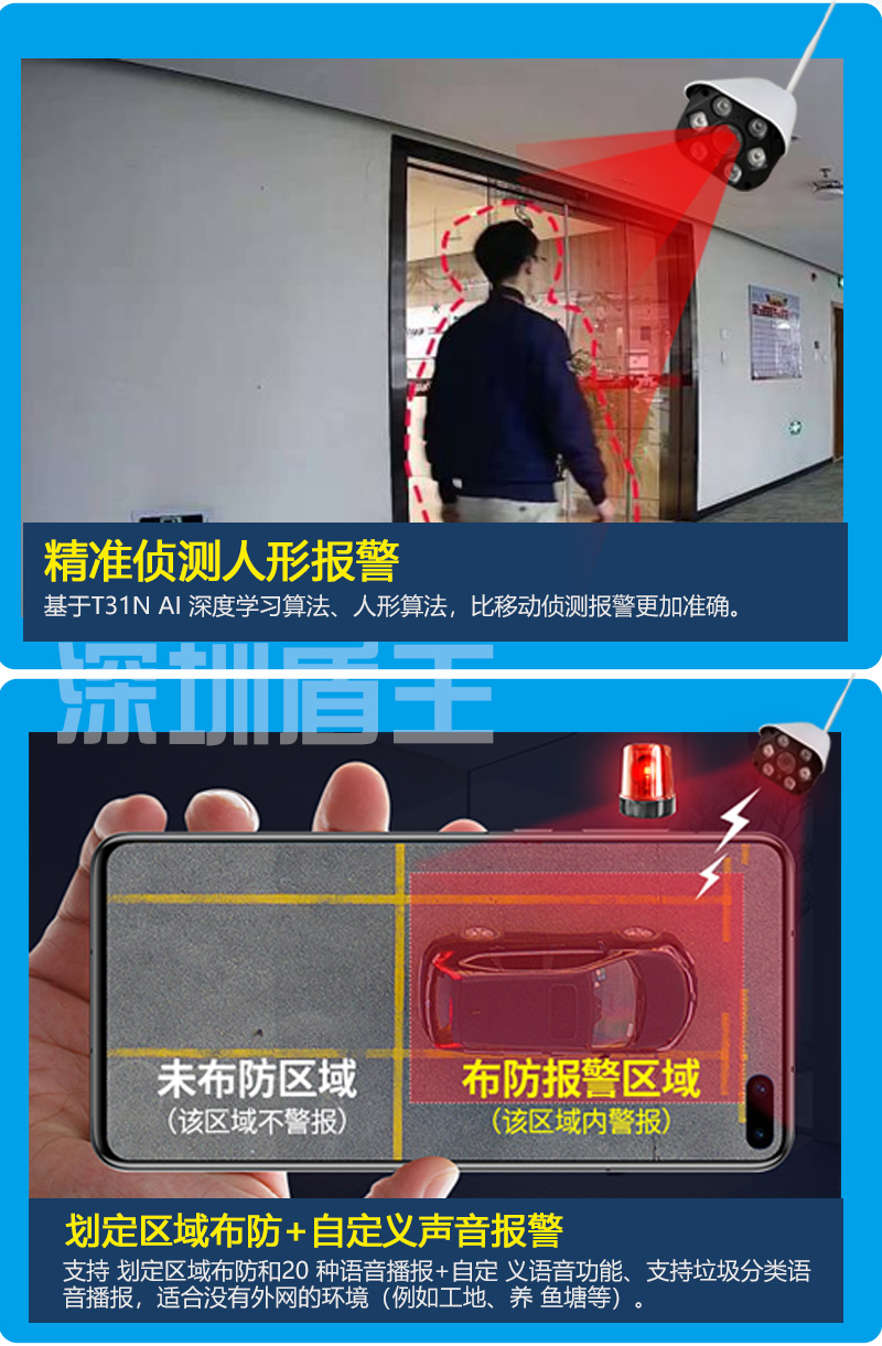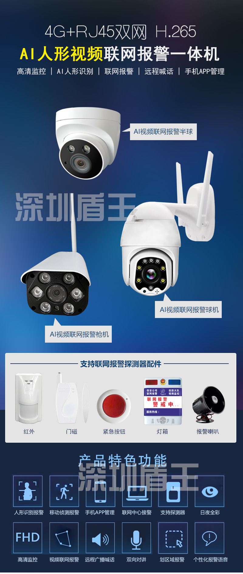• 功能描述:AI人形識別監控視頻聯網報警一體機