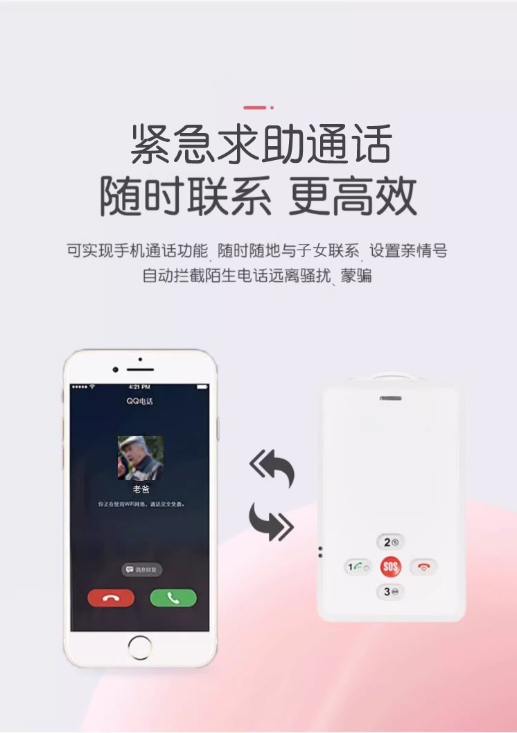 老人GPS北斗定位器_SOS緊急呼叫器_一鍵電話對講胸牌求助器具有GPS、北斗定位,sos緊急呼叫電話對講,親情電話,軌跡查詢等功能,支持中心平臺、手機APP管理,為老人安全提供有力保障。