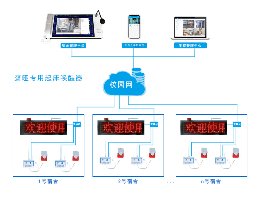 殘疾人聾人專用起床叫醒器震動起床提醒器是為特殊教育學校提供的一種安全防護設(shè)施,符合特教行業(yè)標準8.7電教、信息網(wǎng)路設(shè)備的規(guī)定,是目前最新型的全功能教室信息報警系統(tǒng)。系統(tǒng)采用了全自動IP網(wǎng)絡(luò)控制、每個設(shè)備內(nèi)帶有IP地扯能獨立控制每一個宿舍和教室,在同一時間內(nèi),多功能提醒器上自動顯示相關(guān)信息、紅燈閃爍、警笛報警、震動提醒、應急照明和同時啟動鐘聲提示的同步集成。將“突發(fā)事件報警"和日常"上、下課"管理”匯集于一體,是現(xiàn)代化教學管理、校園安全防護的必備裝置。
