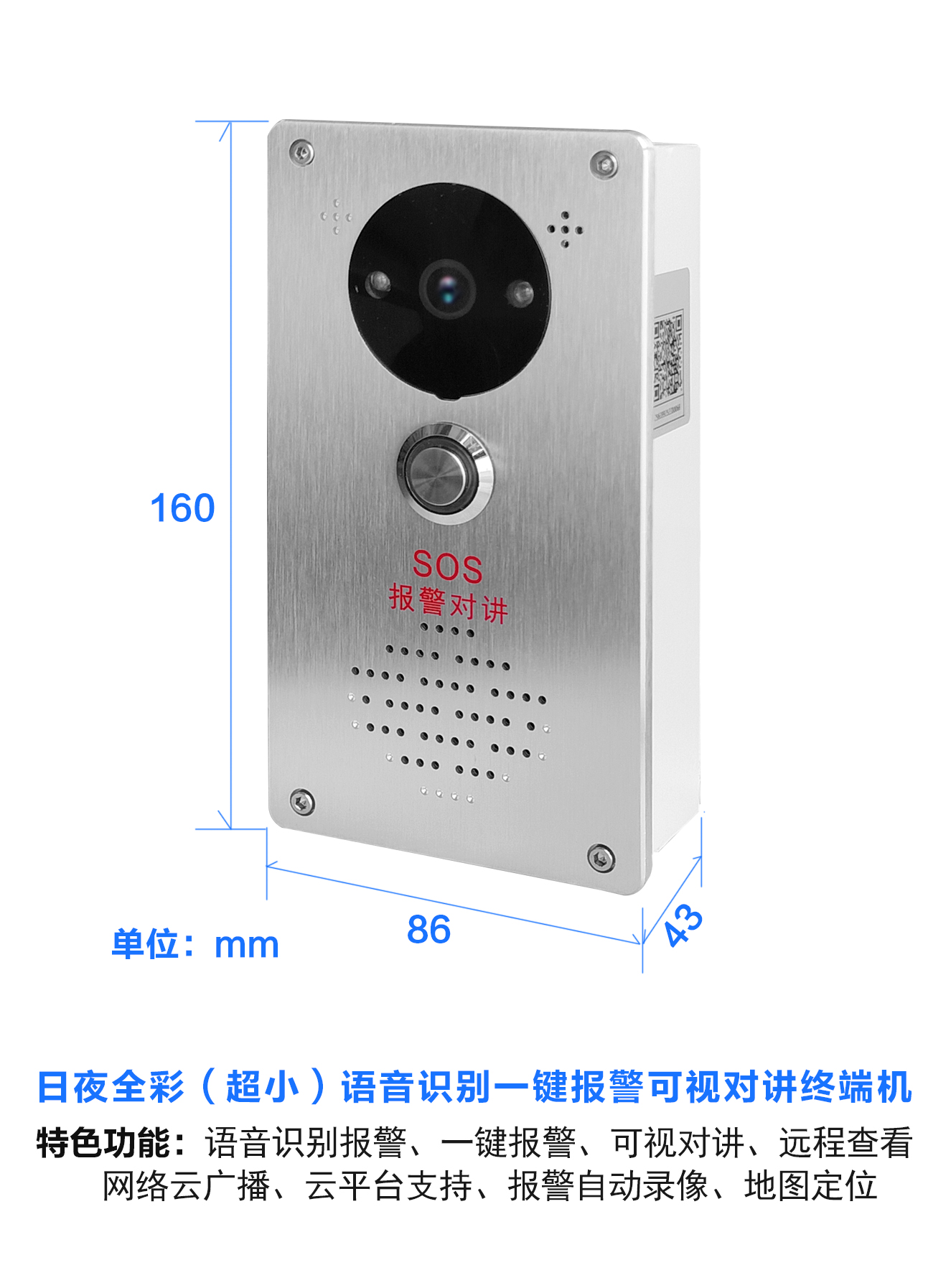 對講終端面板上有一個呼叫按鍵;可通過服務器軟件指定呼叫按鍵所呼叫的目標中心(尋呼話筒或云管理機)。可以一鍵呼叫一鍵掛斷。